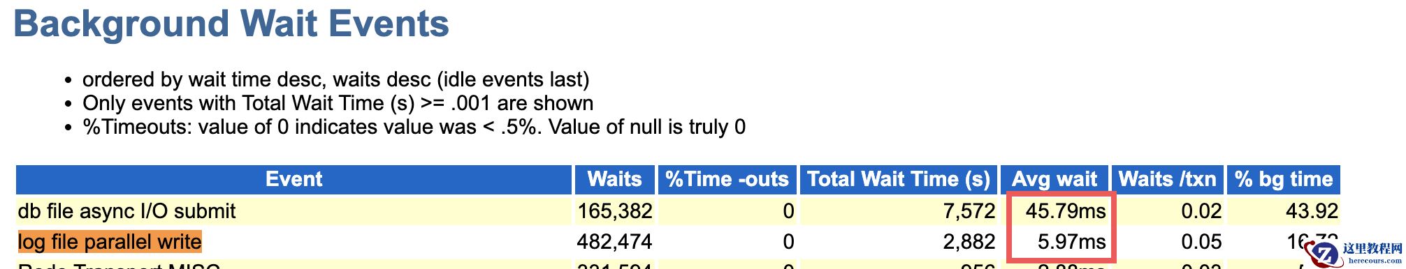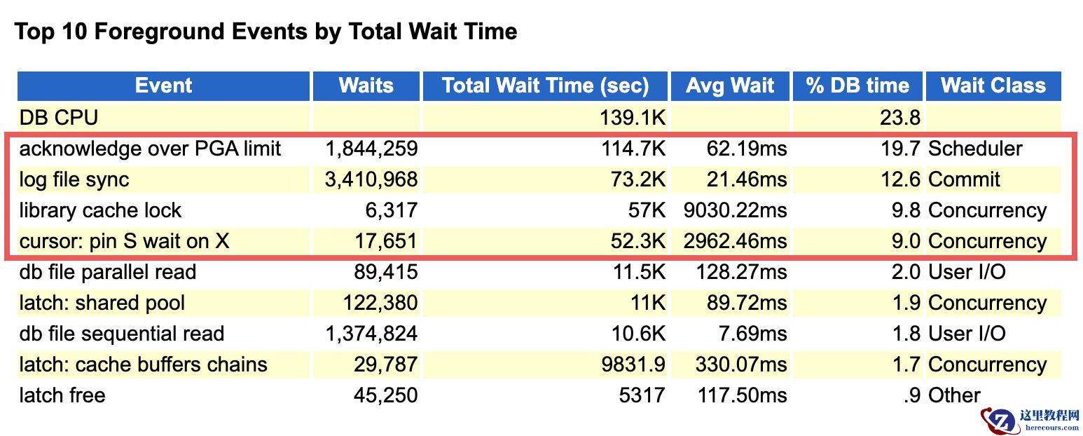 比较’log file sync’和’log file parallel write’的平均等待时间,此时IO存在严重的阻塞。