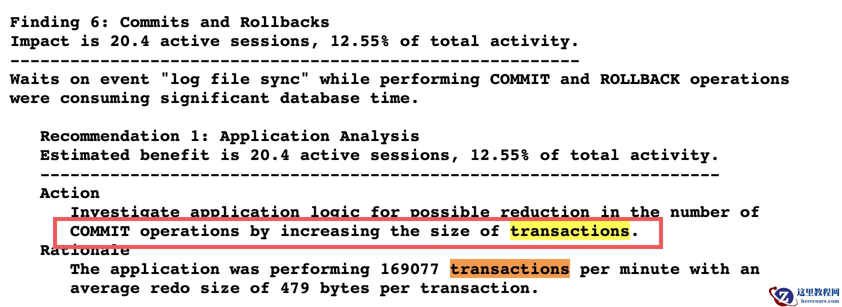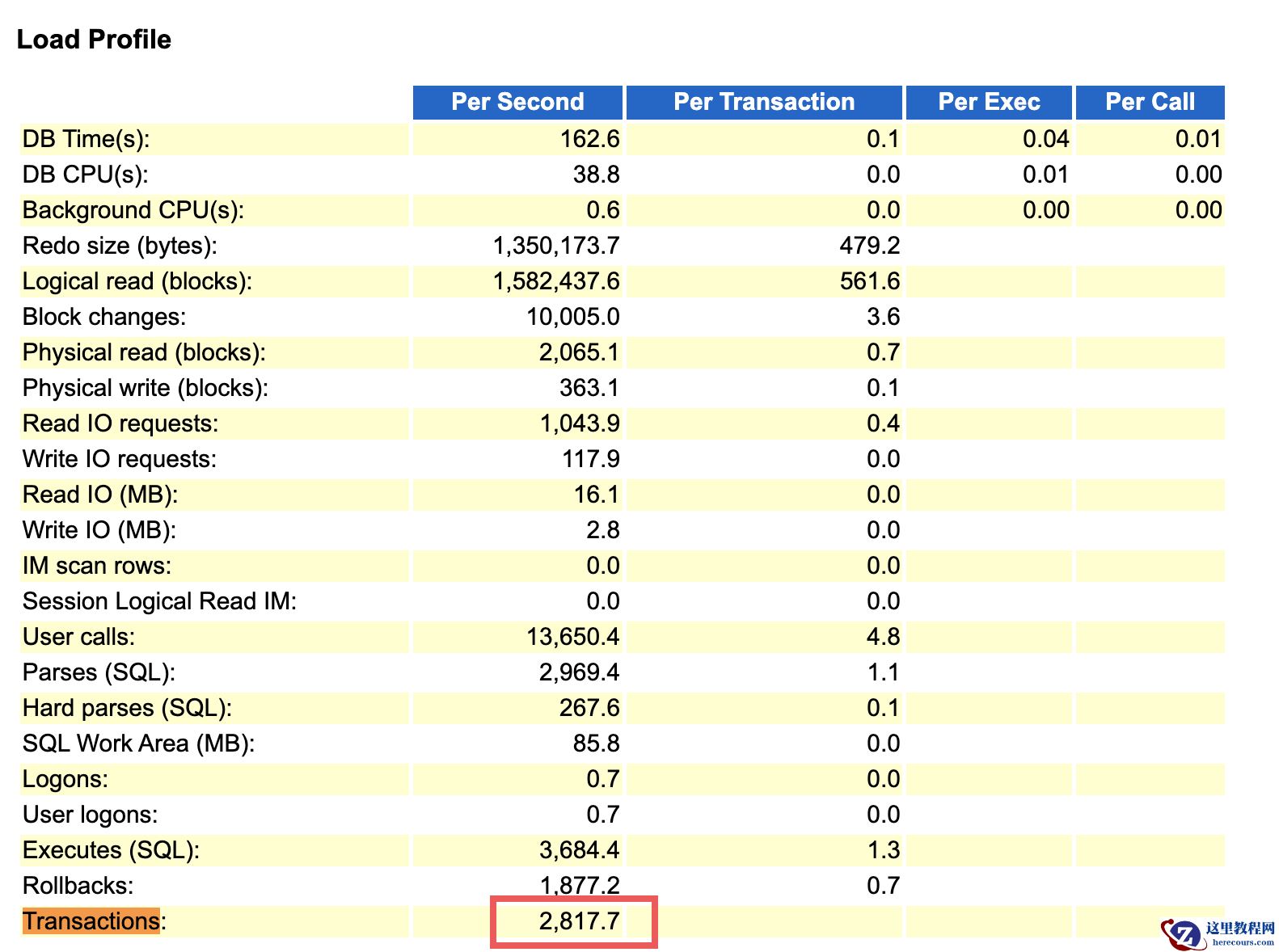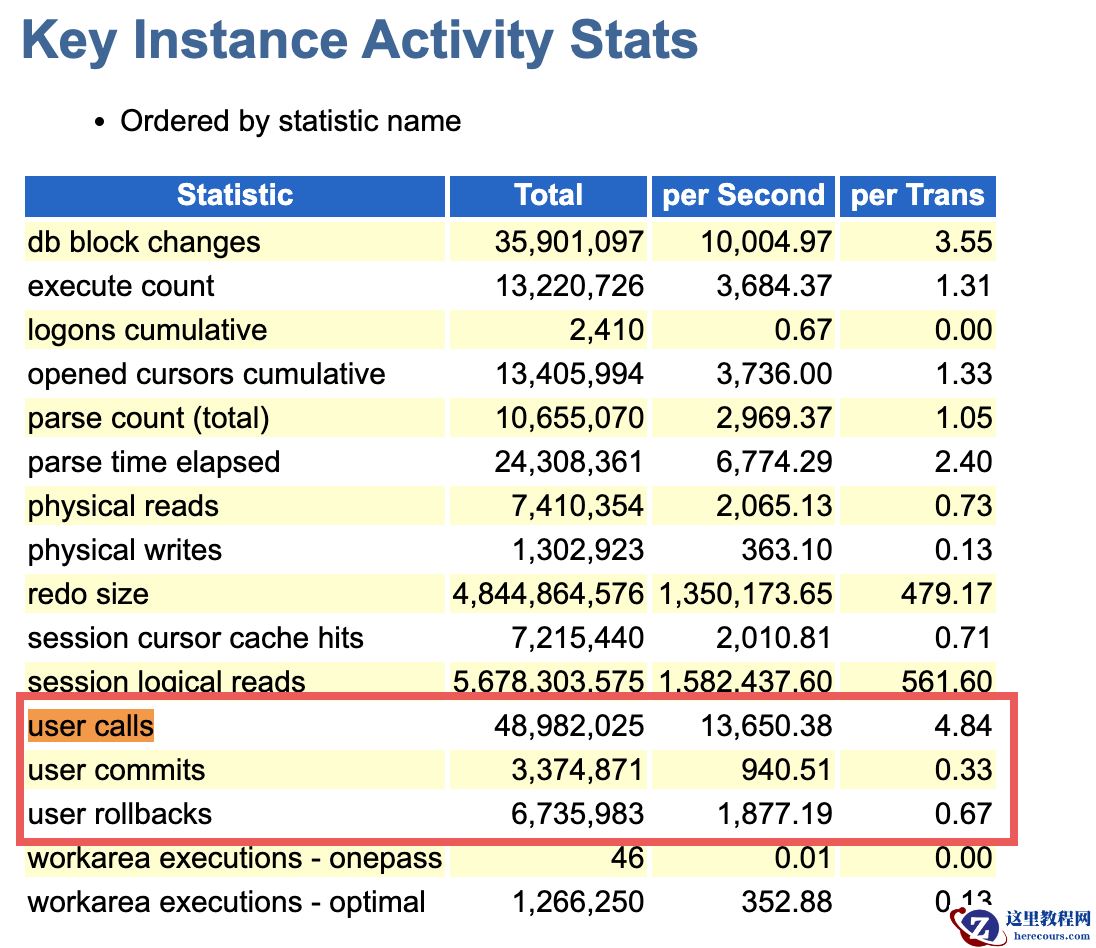 user calls/(user commits+user rollbacks) 本次平均值为4.84= 4.84/(0.33+0.67) ,平均每4.84 次 user calls 就会有一次 commit,业务提交特别的频繁。