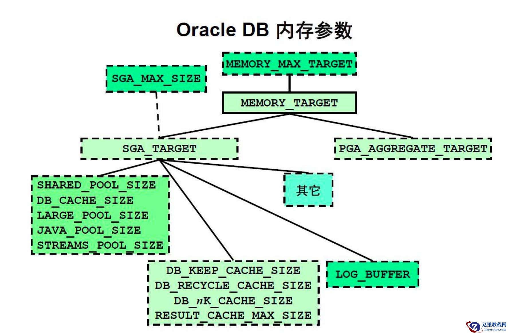 (1)OLTP系统: SGA_TARGET = (total_mem * 0.8) * 0.8 PGA_AGGREGATE_TARGET=(total_mem * 0.8) * 0.2 (2)OLAP(DSS)系统: SGA_TARGET= (total_mem * 0.8) * 0.5 PGA_AGGREGATE_TARGET =(total_mem * 0.8) * 0.5 (3)PGA_AGGREGATE_LIMIT=3MB*processes RAC环境为:PGA_AGGREGATE_LIMIT=5MB*processes