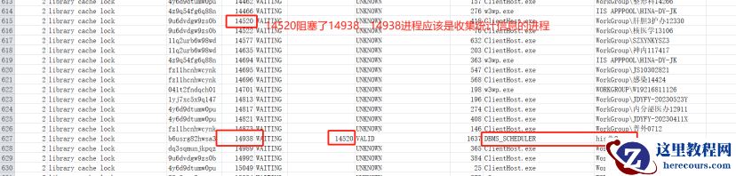 但接着,第二天晚上数据库再次因为 library cache lock 不能访问,保留会话信息后再杀掉会话后解决问题。此时,我们再来分析下数据库卡顿时的会话阻塞关系,如下: