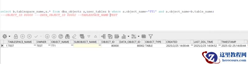 select b.tablespace_name,a.* from dba_objects a,user_tables b where a.object_name='TT1' and a.object_name=b.table_name;
