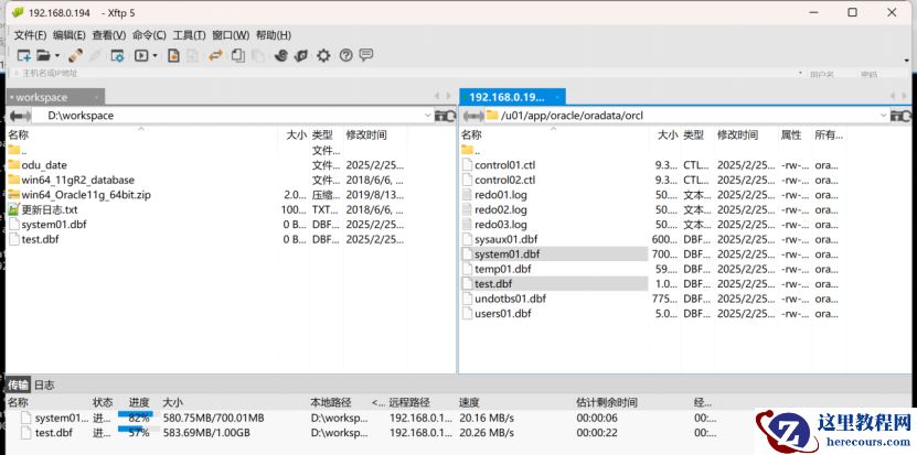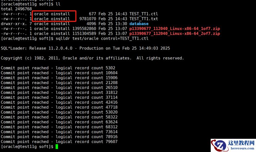 f) 将文件传回 linux ,使用 sqlldr 导入数据