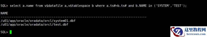 select a.name from v$datafile a,v$tablespace b where a.ts#=b.ts# and b.NAME in ('SYSTEM','TEST');