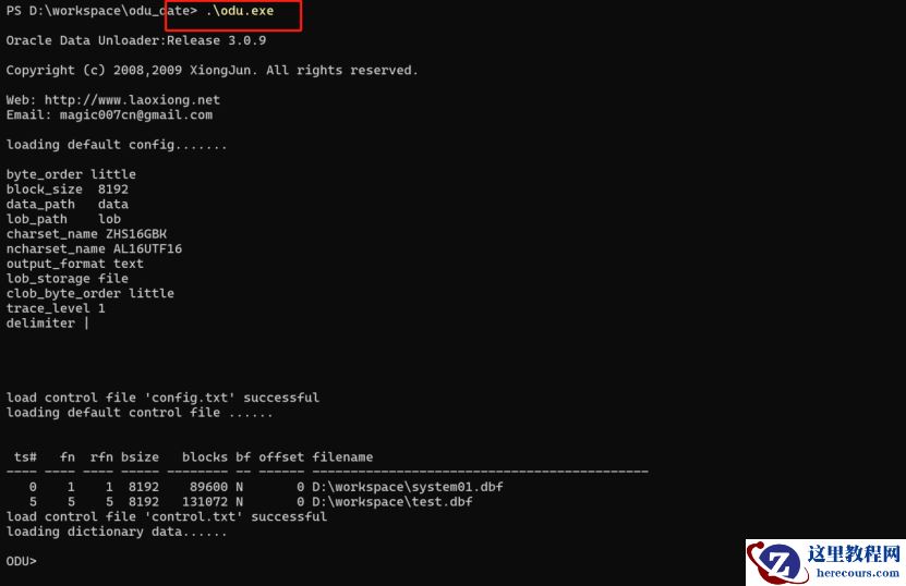 ( 7)进入cmd,执行odu.exe,进入odu命令行