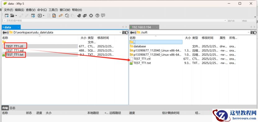 12)将TEST_TT1.ctl和TEST_TT1.txt文件传回Linux服务器