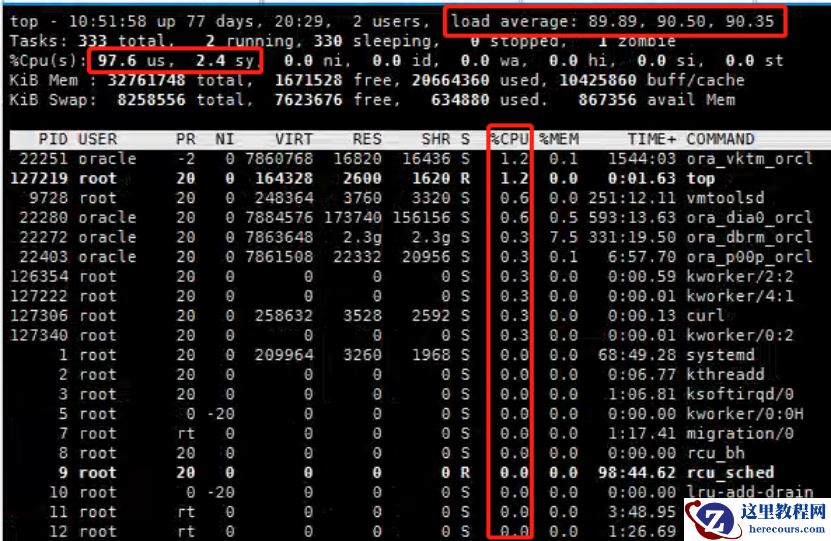 DBA提前做了一个 下午 2 点到 3 点的数据库的 AWR 报告 , 通过分析 发现数据库的负载并不高 。 为了进一步确认情况,远程登陆到数据库服务器,确实很卡,通过 OS 命令发现 CPU 当前仍然使用率很高, 使用 dbms_workload_repository.create_snapshot() 命令 采集最新 快照 , 生成最新的 AWR 报告进行分析 , 仍然未 发现 CPU 使用率高的迹象 ,不是数据库负载高引起的数据库慢 。