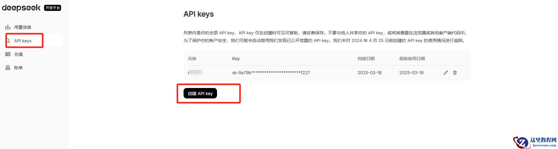 3.创建API key,创建好记得记录下API key