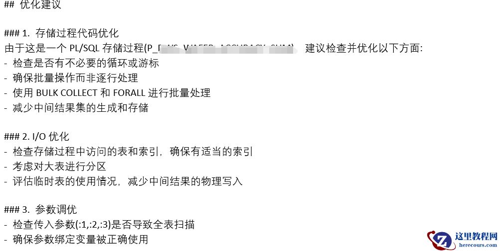 因为这是一个存储过程,没有具体sql和执行计划,所以deepseek的优化能力很有限,只是给出了一些通用的建议