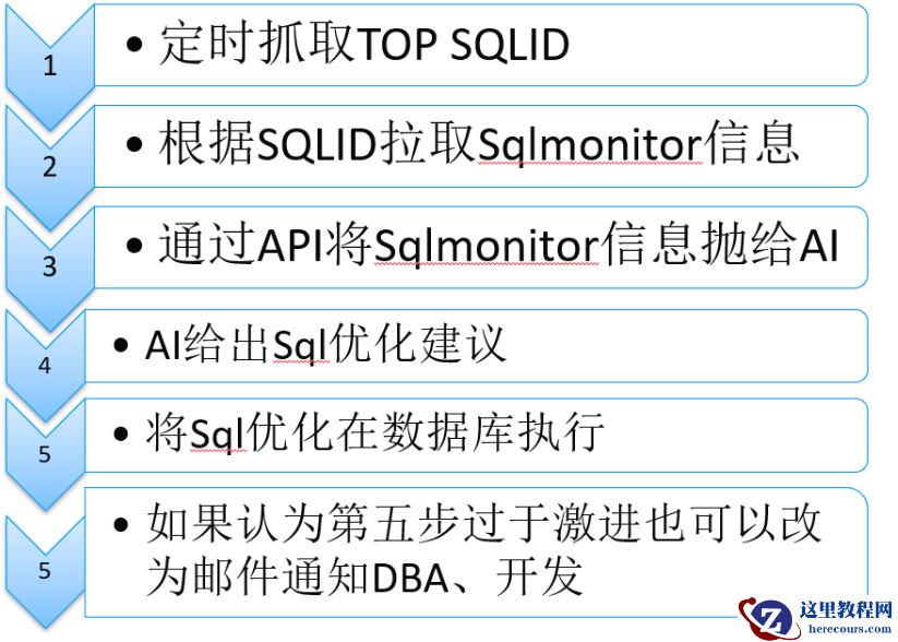 我这里来实现我上篇文章想的sql自动优化,大概的路径是这样的,因为我一个管理几十套ORACLE集群,没有时间对每个库进行sql优化,那么我就按如下路径来尝试利用AI来做自动优化