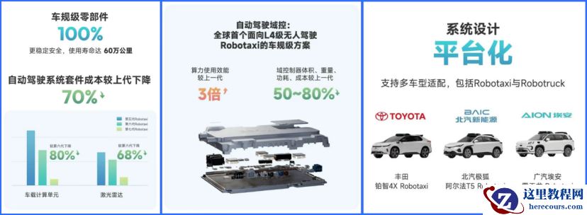 技术之外,真正让Robotaxi先跑起来的支撑,恰恰和DeepSeek当时的逆袭有相似之处:成本。 特斯拉坚持现在的路线,就有成本的考虑。但中国Robotaxi玩家显然具有更多维度的利好条件。 模型需要算力,在软件算法层面,小马智行通过神经网络算子的深度优化,实现同等算力下3倍计算效率提升。 相当于只用waymo十分之一的钱,做出来同样的产品。并且,国内的产业链优势,更显著改善了Robotaxi的成本。比如国产激光雷达等零部件的升级,都为Robotaxi降本带来了巨大的突破。小马智行在2025年上海车展展出的第七代车规级自动驾驶软硬件系统(Gen 7)即将快速切入量产,它基于100%车规级零部件,以模块化架构提升整合效率,缩短上车周期,BOM成本较前代下降70%,显著提升了量产的经济可行性。这种成本带来的“量产友好”,是Waymo们做不到的。