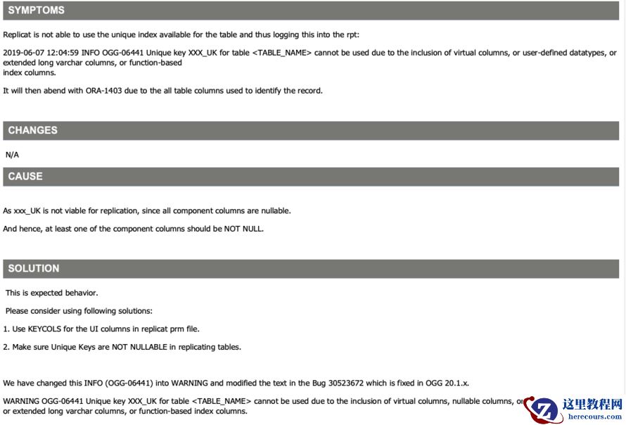 - INFO OGG-06441 不是告警而容易忽略的错误