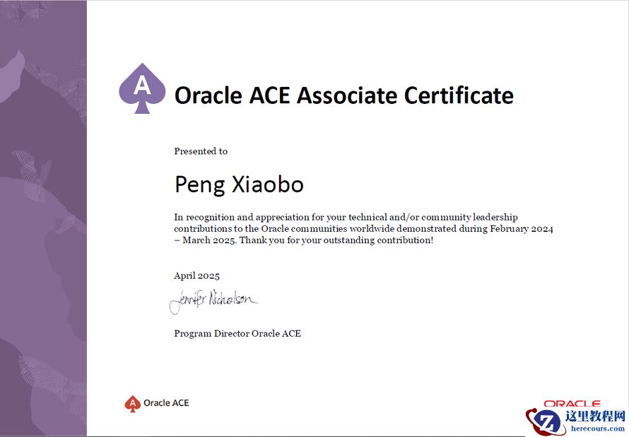 兄弟姐妹们,今天和大家一起聊聊我的从业生涯的故事,我的故事要是从头到尾讲的话都可以写成一本书啦。期待有人来采访我!哈哈我现在在一家金融公司工作,是一名专职数据库管理员,2025年我被Oracle公司授予了ACEs的称号,Oracle ACE是Oracle公司为表彰在技术社区中持续分享知识、推动技术发展的专家而设立的全球性荣誉。获得该提名不仅是对个人技术能力的认可,更是对社区贡献的肯定。我的Oracle ACEs的链接????: