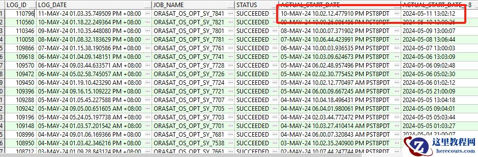 2 、转换为北京时间后( ACTUAL_START_DATE_+8 列),实际执行时间为 13:03 (与故障时间完全吻合)