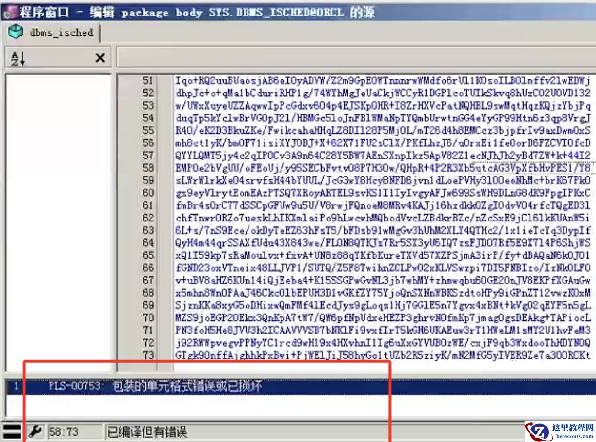技术团队连夜远程接入客户数据库。登录系统后,首先查询 SYS.DBMS_ISCHED 包的状态,果然显示"INVALID"。尝试用 ALTER PACKAGE 命令重新编译,屏幕上立刻跳出刺眼的红色报错:"PLS-00753:包装的单元格式错误或已损坏"。这个系统包是 Oracle 调度器的核心组件,一旦失效,所有定时任务都成了无舵之舟。