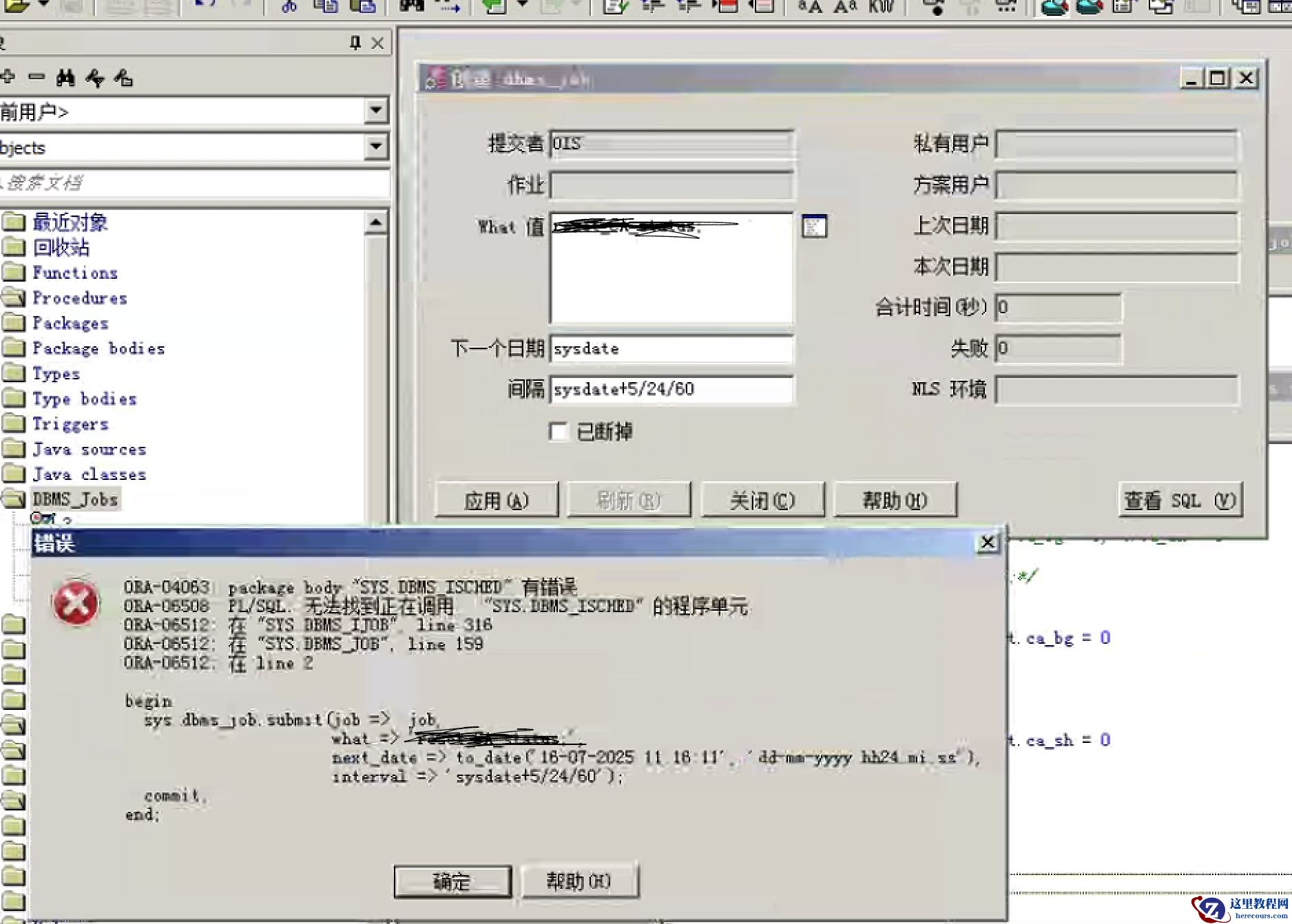 深夜的技术支持群突然弹出一条紧急消息,某客户的业务系统管理员焦急地反馈:"创建定时 Job 时反复报错'ORA-04063 package body SYS.DBMS_ISCHED 有错误 ',明天一早有重要数据同步需要执行,麻烦尽快处理!"