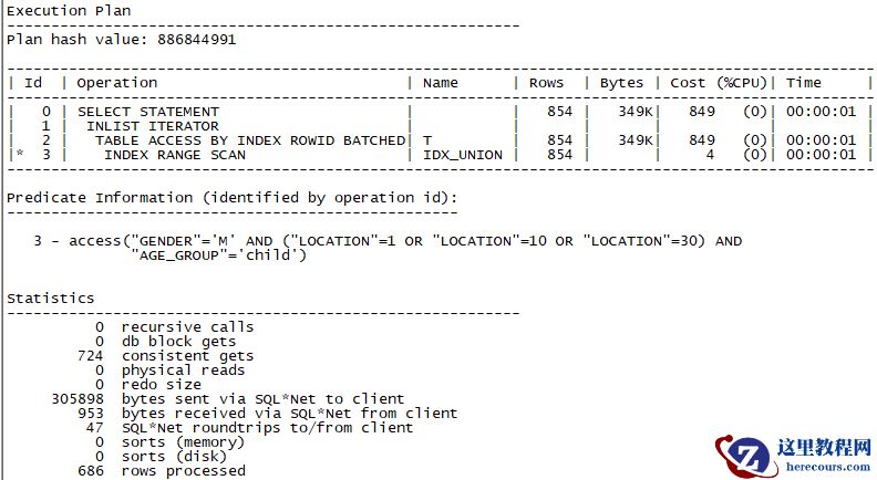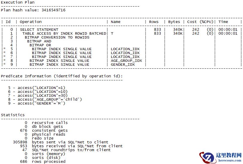 BITMAP INDEX SINGLE VALUE快速定位到每个条件对应的位图,然后使用