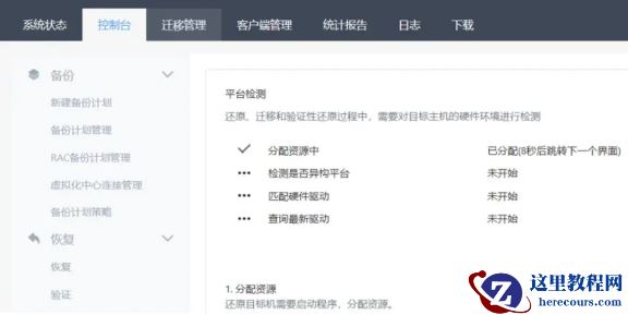 3 在CDP数据备份开始之后,新建热备计划将CDP的数据流从服务端传输到目标端。以整机恢复的方式在目标端建立起新的虚拟机,并开始传输数据。在建立目标端虚拟机的过程中会进行平台检测、驱动注入、系统开机。