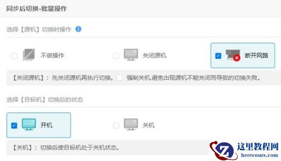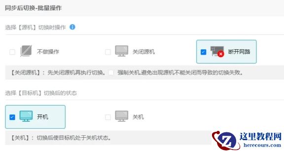 5 来到业务切换窗口期或业务低峰期,进入停机切换过程,切换过程中对源和目标端状态进行选择。建议选择源端为“断开网络”,目标端直接开机以验证业务。