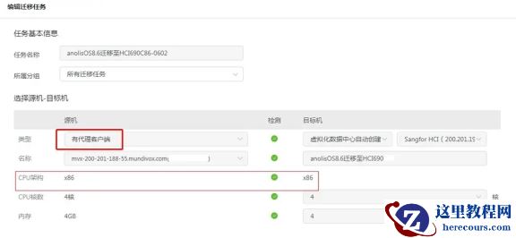 3 在新建迁移任务的过程中嵌入深信服云/虚拟化平台新建虚拟机功能,可同时选择迁移后目标端虚拟机的详细配置,如需对迁移后的虚拟机进行配置修改、策略修改、高级特性配置,皆可在迁移之前完成, 配置完成后自动在目标端生效,无需在业务停机切换过程中消耗时间, 可以在一定程度上缩短业务停机窗口。