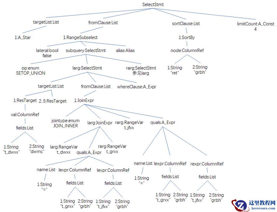 1、解析树:通过跟踪分析源码,分析解析树Parsetree的结构; 2、其他数据结构:SelectSmt、RangeSubselect、JoinExpr等数据结构。