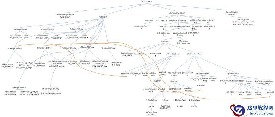 1、计划树结构:通过日志输出分析计划树结构; 2、重要的数据结构:RTE、Plan等。