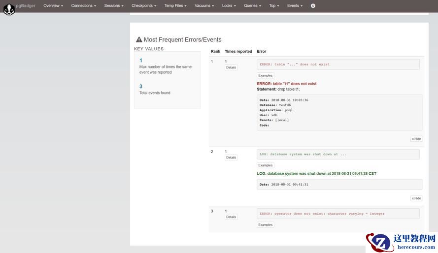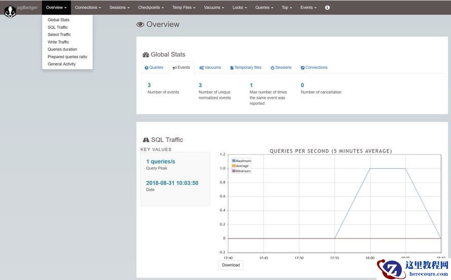 pgbadger通过分析PG的日志文件,以图表的形式展现数据库的各项活动和状态信息,其愿景是:"Make your reports in seconds!".