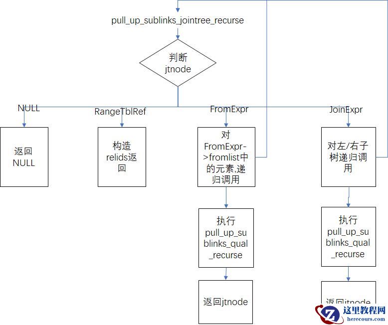 1、上拉过程:上拉FromExpr中的子链接->上拉条件表达式quals中的子链接。处理过程使用递归;