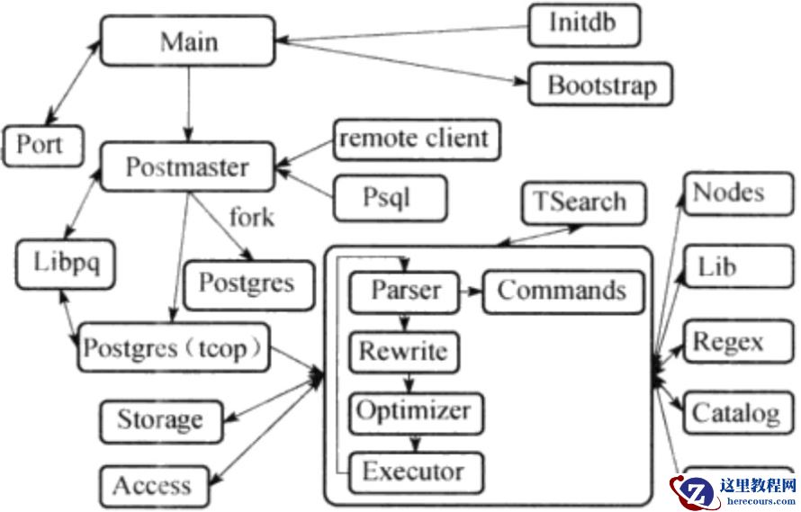 main:主程序模块,它负责将控制权转到Postmaster进程或Postgres进程。