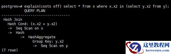 这里执行计划并没有使用Hash Semi-Join,是因为inner plantree用了group hashagg进行了去重,所以原来的Semi-Join可以进一步优化为Hash Join,这种优化进一步扩大了Join顺序搜索空间。