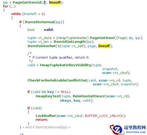 后续的主要逻辑是遍历pd_linp数组,通过offset+page地址获取到元组内存地址。然后对元组做可见性判断。逻辑如下: