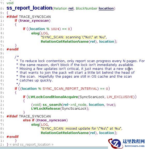 每次更新表的sync start page时,需要遍历整个list。为了减少这个list的访问,每隔SYNC_SCAN_REPORT_INTERVAL个页面才去更新list,这个数值是128 * 1024 / BLCKSZ。