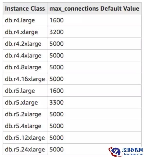 扩展连接数是PostgreSQL普遍关心的问题。Aurora PostgreSQL数据库的连接数是有限制的。下表从AWS文档中总结了不同实例大小下,建议采用的数据库连接数。
