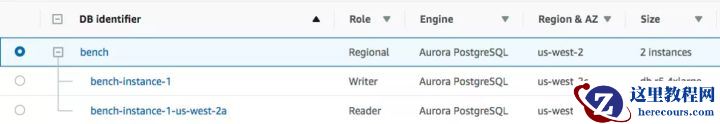 CockroachDB(版本19.1.4)配置与YugabyteDB相同。Aurora PostgreSQL部署在类型为db.r5.4xlarge的双节点上(每个节点上有16个vCPU)。一个节点是主节点,另一个节点是备用节点,用于在其他可用区中进行快速故障转移。此设置如下所示。
