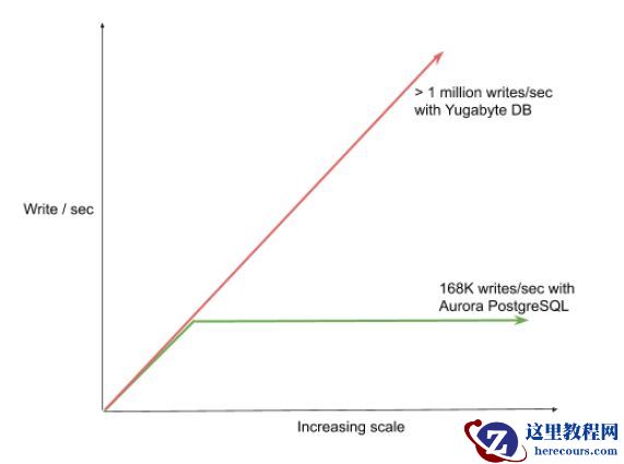 我们已经在上表中指出,AWS Aurora无法水平扩展写入。在Aurora中扩展写入的唯一方法是垂直扩展,这意味着必须使单个节点更坚固。就vCPU而言,Aurora的最大扩展写IOPS,取决于vCPU的最大可用节点。