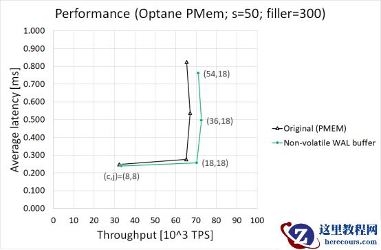 通过pgbench,指定不同的-c/--client和-j/--job,数据量规模因子s=50或者1000.结果如下: Results (s=50) : ============== Throughput [10^3 TPS] Average latency [ms] ( c, j) before after before after ------- --------------------- --------------------- ( 8, 8) 35.7 37.1 (+3.9%) 0.224 0.216 (-3.6%) (18,18) 70.9 74.7 (+5.3%) 0.254 0.241 (-5.1%) (36,18) 76.0 80.8 (+6.3%) 0.473 0.446 (-5.7%) (54,18) 75.5 81.8 (+8.3%) 0.715 0.660 (-7.7%) Results (s=1000) ================ Throughput [10^3 TPS] Average latency [ms] ( c, j) before after before after ------- --------------------- --------------------- ( 8, 8) 37.4 40.1 (+7.3%) 0.214 0.199 (-7.0%) (18,18) 79.3 86.7 (+9.3%) 0.227 0.208 (-8.4%) (36,18) 87.2 95.5 (+9.5%) 0.413 0.377 (-8.7%) (54,18) 86.8 94.8 (+9.3%) 0.622 0.569 (-8.5%) 每个规模因子下,负载和延迟都有所改进。负载在(c,j)=(36,18)下TPS最高。 S =1000案例下,提升百分比较大。规模因子大,对于同表和索引的竞争就小些,也就是加锁和解锁的操作较少。这种情况下WAL对性能更重要。 条件 : 1) 使用一个物理server,2个numa节点:PG绑定到node 0,pgbench到node 1,每个节点18个core,192GB的DRAM 2) PGDATA在nvme ssd上,pg_wal在交互6-in-1的NVDIMM-N上:都安装在server端,node 0,都用ext4,NVDIMM-N被mounted时有“-o dax” 3) 新增nvwal_path和nvwal_size参数到postgresql.conf中 步骤: 对每个(c,j)都做三次,然后取平均值: (1) Run initdb with proper -D and -X options; and also give --nvwal-path and --nvwal-size options after patch (2) Start postgres and create a database for pgbench tables (3) Run " pgbench -i -s ___" to create tables (s = 50 or 1000) (4) Stop postgres, remount filesystems, and start postgres again (5) Execute pg_prewarm extension for all the four pgbench tables (6) Run pgbench during 30 minutes pgbench command line ==================== $ pgbench -h /tmp -p 5432 -U username -r -M prepared -T 1800 -c ___ -j ___ dbname I gave no -b option to use the built-in "TPC-B (sort-of)" query. 软件 ======== - Distro: Ubuntu 18.04 - Kernel: Linux 5.4 (vanilla kernel) - C Compiler: gcc 7.4.0 - PMDK: 1.7 - PostgreSQL: d677550 (master on Mar 3, 2020) 硬件 ======== - System: HPE ProLiant DL380 Gen10 - CPU: Intel Xeon Gold 6154 (Skylake) x 2sockets - DRAM: DDR4 2666MHz {32GiB/ch x 6ch}/socket x 2sockets - NVDIMM-N: DDR4 2666MHz {16GiB/ch x 6ch}/socket x 2sockets - NVMe SSD: Intel Optane DC P4800X Series SSDPED1K750GA P atch v2-0001-Support-GUCs-for-external-WAL-buffer.patch (36K) Download Attachment v2-0002-Non-volatile-WAL-buffer.patch (53K) Download Attachment v2-0003-README-for-non-volatile-WAL-buffer.patch (7K) Download Attachment nvwal-performance-s50.png (39K) Download Attachment nvwal-performance-s1000.png (40K) Download Attachment postgresql.conf (1K) Download Attachment
