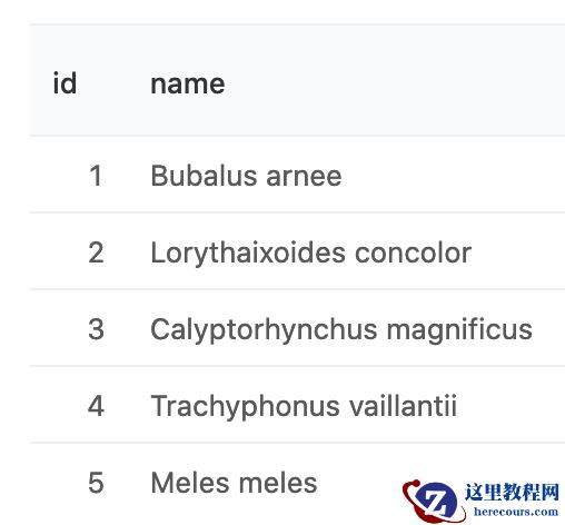 执行:SELECT id, name FROM my.customers;