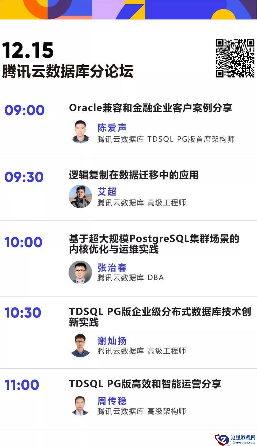 12月15日 09: 00-09:30: TDSQL PG版首席架构师陈爱声将为大家带来 <<Oracle兼容和金融企业客户案例分享>>。陈老师网名阿弟,是国内PG社群的知名布道者,陈老师的本次分享将主要介绍TDSQL PG版国产化替换最佳实践,详细说明TDSQL PG版做了那些ORACLE兼容性增强,分享去O的全流程。 众所周知,去O是一个艰难的过程,让我们期待TDSQL PG版在国产化替换中的精彩表现。