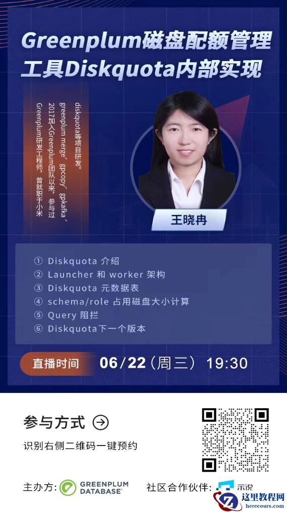 - 【直播预告】Greenplum磁盘配额管理工具Diskquota内部实现