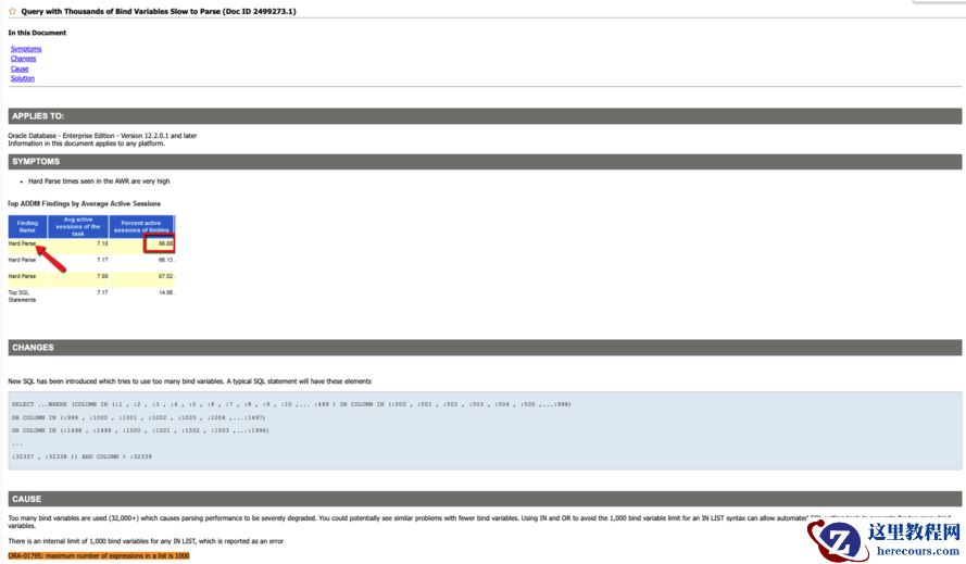 Query with Thousands of Bind Variables Slow to Parse (Doc ID 2499273.1)