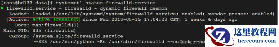 使用命令 systemctl status firewalld.service 查看防火墙状态,如图 13 所示: