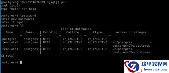 (1) 在 postgresql 用户下直接输入命令 :$psql ,看到版本信息则说明链接成功。