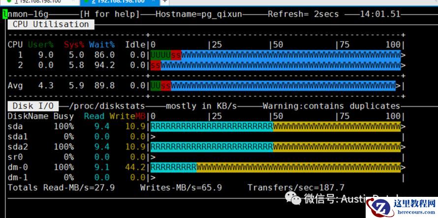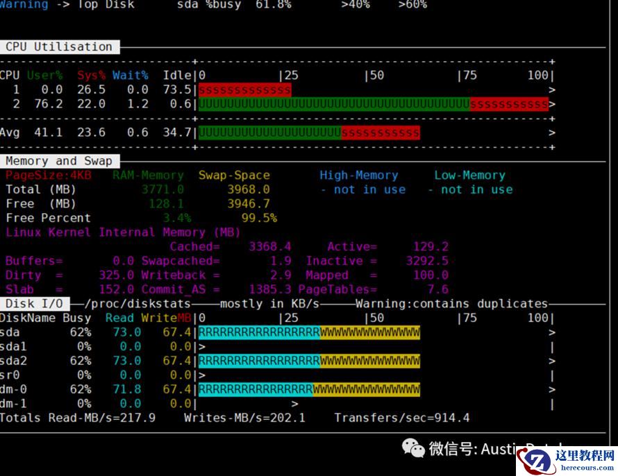 整体从NMON 查看系统的状态,总体的系统都在满负荷的而工作。