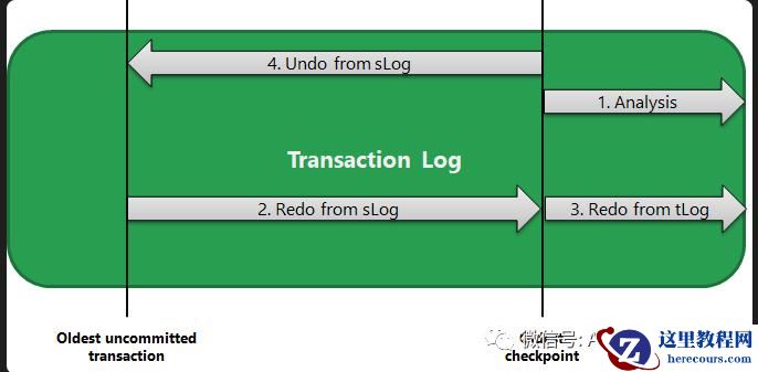 REDO 的实现在SQL SERVER 也更加的简单,还是通过LDF 日志文件来实现,在最后一次CHECKPOINT点前说明数据已经刷新到数据页面,则这些日志数据无需回滚,而在最后一次CHECKPOINT点标志位后的日志,则说明需要进行前滚。