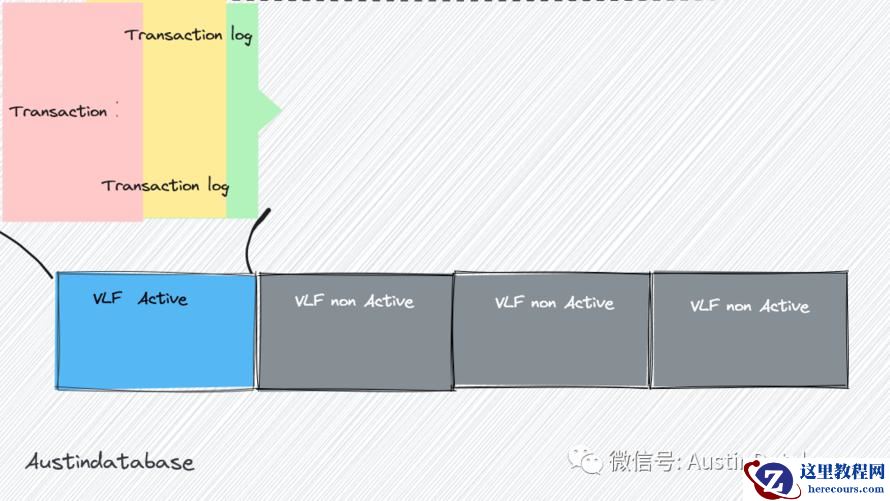 这里需要说明,SQL SERVER LDF 文件本身是被切成多个VLF 块的,而这些块有正在被使用的,也有还未激活的,整体的日志VLF 是循环使用每个VLF 中会写事务的日志,每个日志占用512bytes 到 60KB 不同大小的,来记录每个事务的工作。