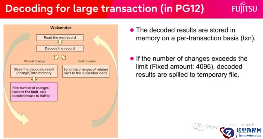 在 13 以前,数据库只会为内存中的每个事务至多保留 4096 个更改 (max_changes_in_memory)。如果有一个非常冗长的大事务,其余的更改会作为溢出文件溢出到磁盘,也就是我们看到的那一些 spill 文件。