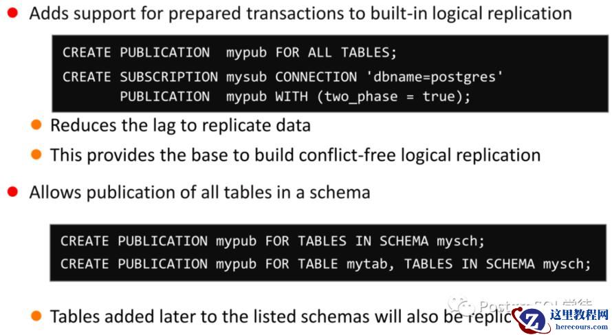 而在 15 版本里,主要是对逻辑复制功能方面进行了增强,比如 row filter