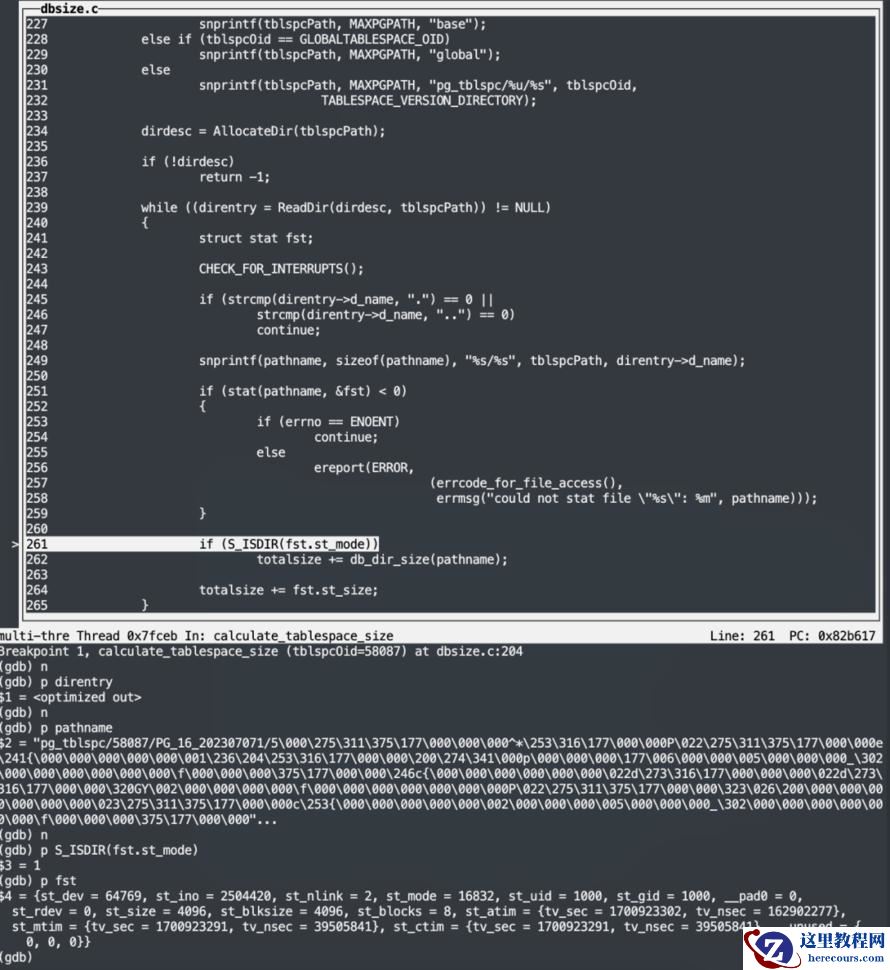 tblspcOid,构造表空间的路径。这部分考虑了默认表空间和全局表空间的特殊情况AllocateDir 打开表空间目录,并使用 ReadDir 遍历目录。对于每个目录项(direntry),还会做CHECK_FOR_INTERRUPTS() 用于处理可能的中断请求。snprintf 构建文件或目录的完整路径。stat 失败且错误不是 ENOENT(文件不存在),则报错。totalsize。那让我们看下这 4KB 是什么大小,其实到这里各位已经知道答案了。