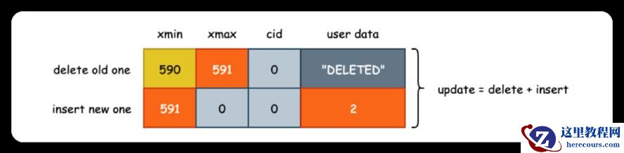 xmin 和 xmax 分别代表插入某一行的事务 ID、删除或更新某一行的事务 ID