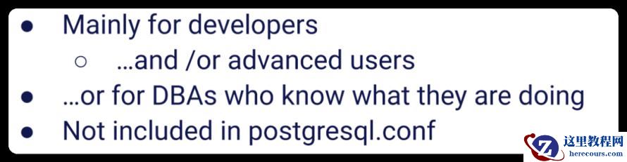 更多信息可以参考 https://www.postgresql.org/docs/current/runtime-config-developer.html