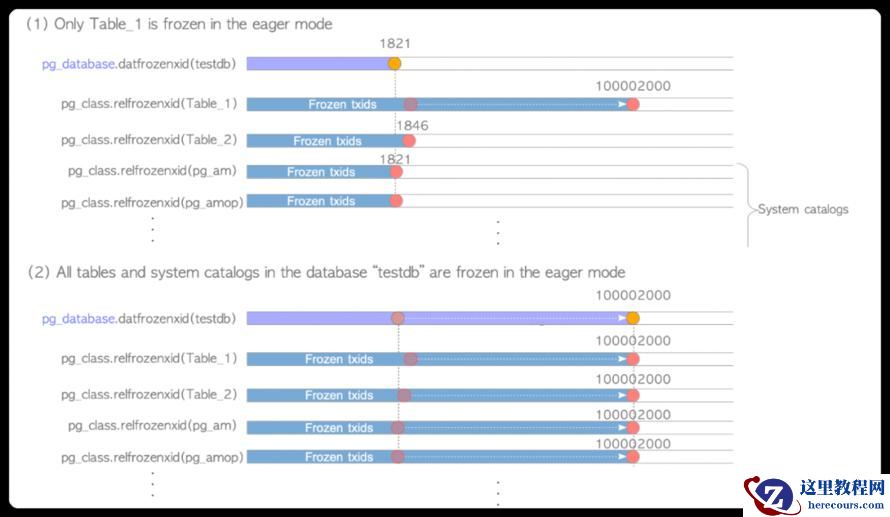 All transaction IDs before this one have been replaced with a permanent transaction ID in this database,表示该数据库中最老的已冻结的事务 ID,是 pg_class.relfrozenxid 中的最小值。
